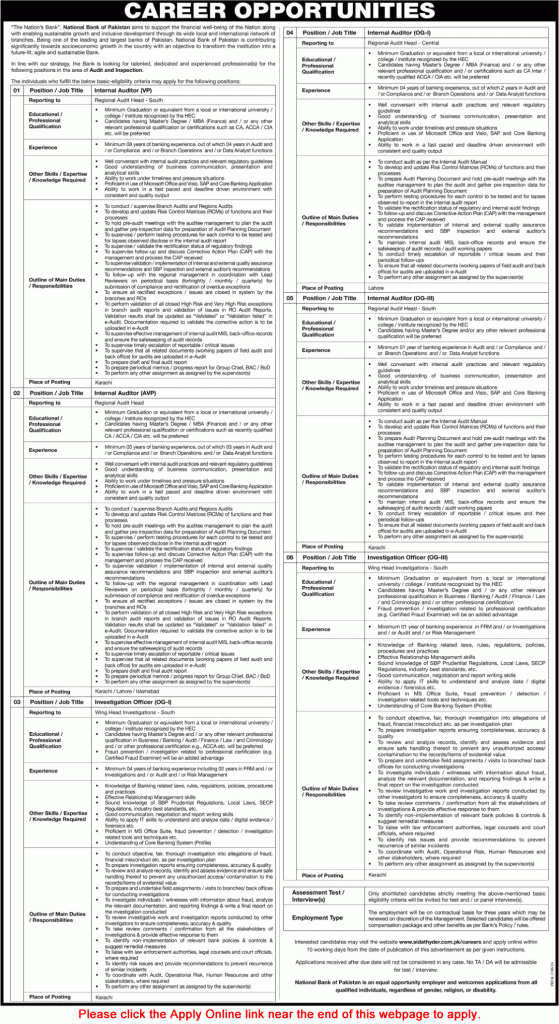 The recruitment process at the National Bank of Pakistan is designed to identify talented individuals who align with the bank’s values and vision. Here’s a typical process: