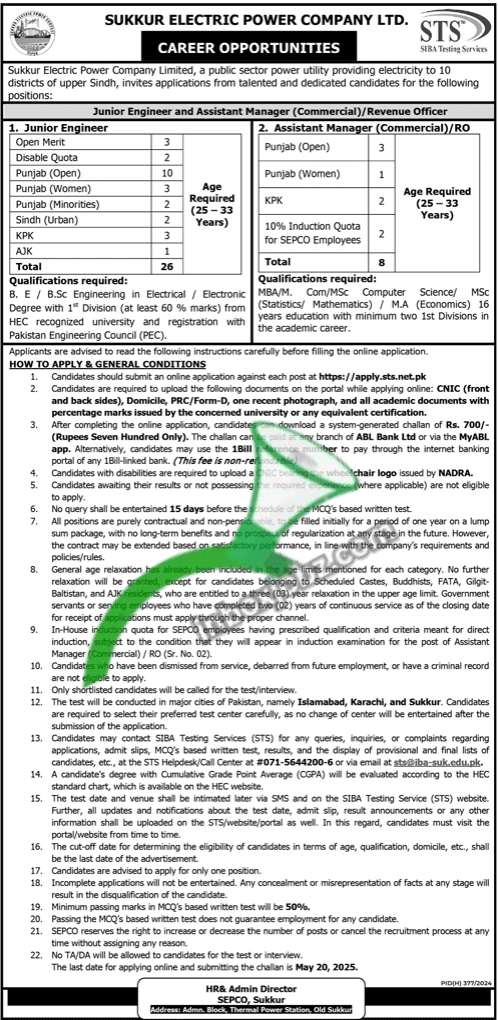 - SEPCO نوکریوں کے لیے درخواست دینے کی آخری تاریخ 20 مئی 2025 تک بڑھا دی گئی ہے۔